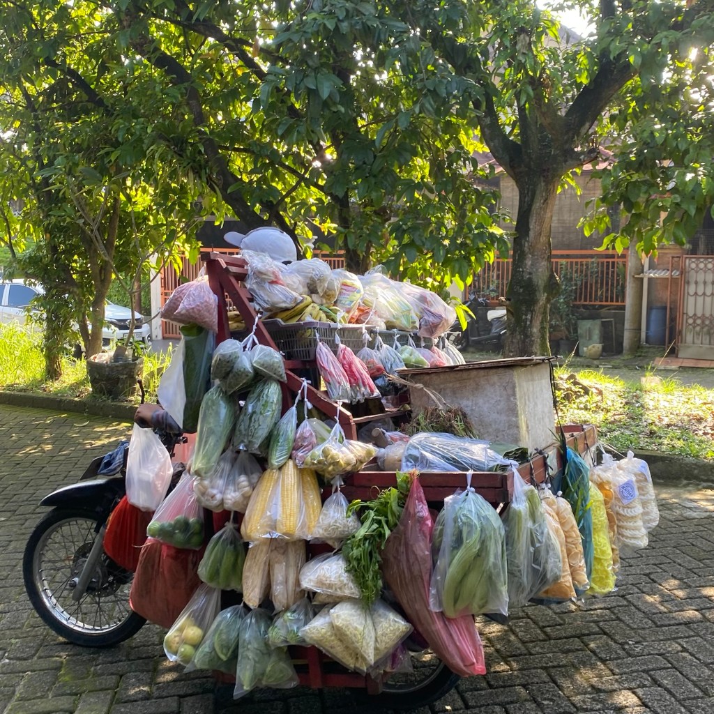 Ada teriakan akrab di pagi hari dari bakul sayur. Ada yang keliling pakai motor ada yang berjualan dengan gerobak dorong. Merekalah penyelamat isi dapur manakala pemilik rumah enggan pergi ke pasar atau supermarket untuk membeli bahan masakan dalam jumlah kecil.